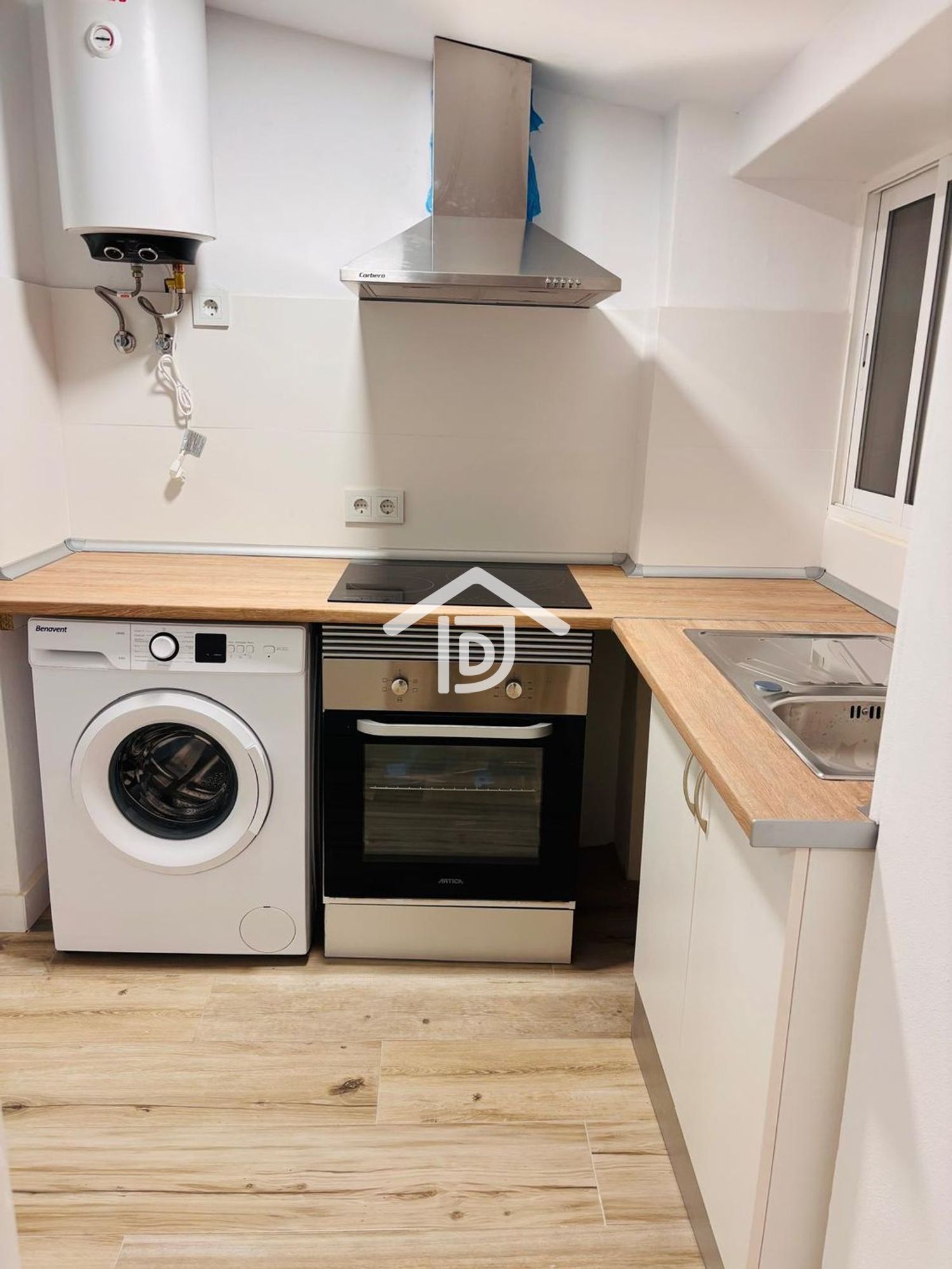 Cocina totalmente equipada a estrenar: nevera, lavadora, vitrocerámica, horno, termo, campana extractora… todo nuevo y listo para usar