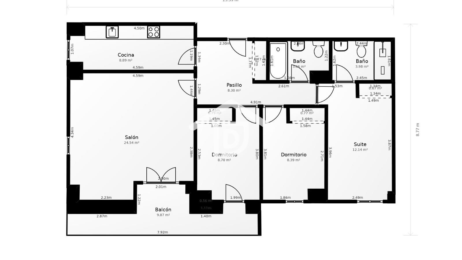 2 baños completos, uno de ellos en suite, con acabados de calidad.